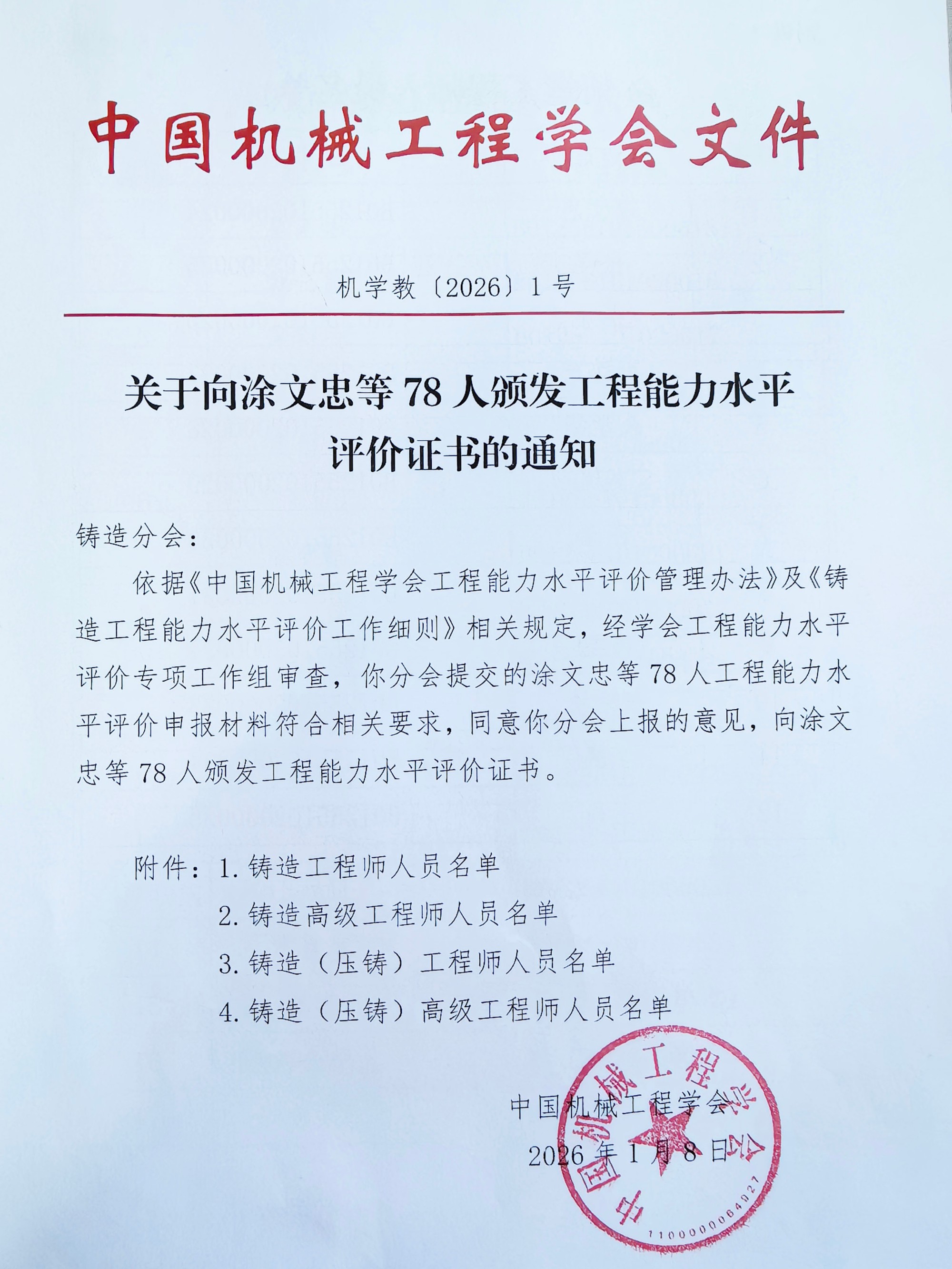 铸造工程师水平评价考核结果申诉