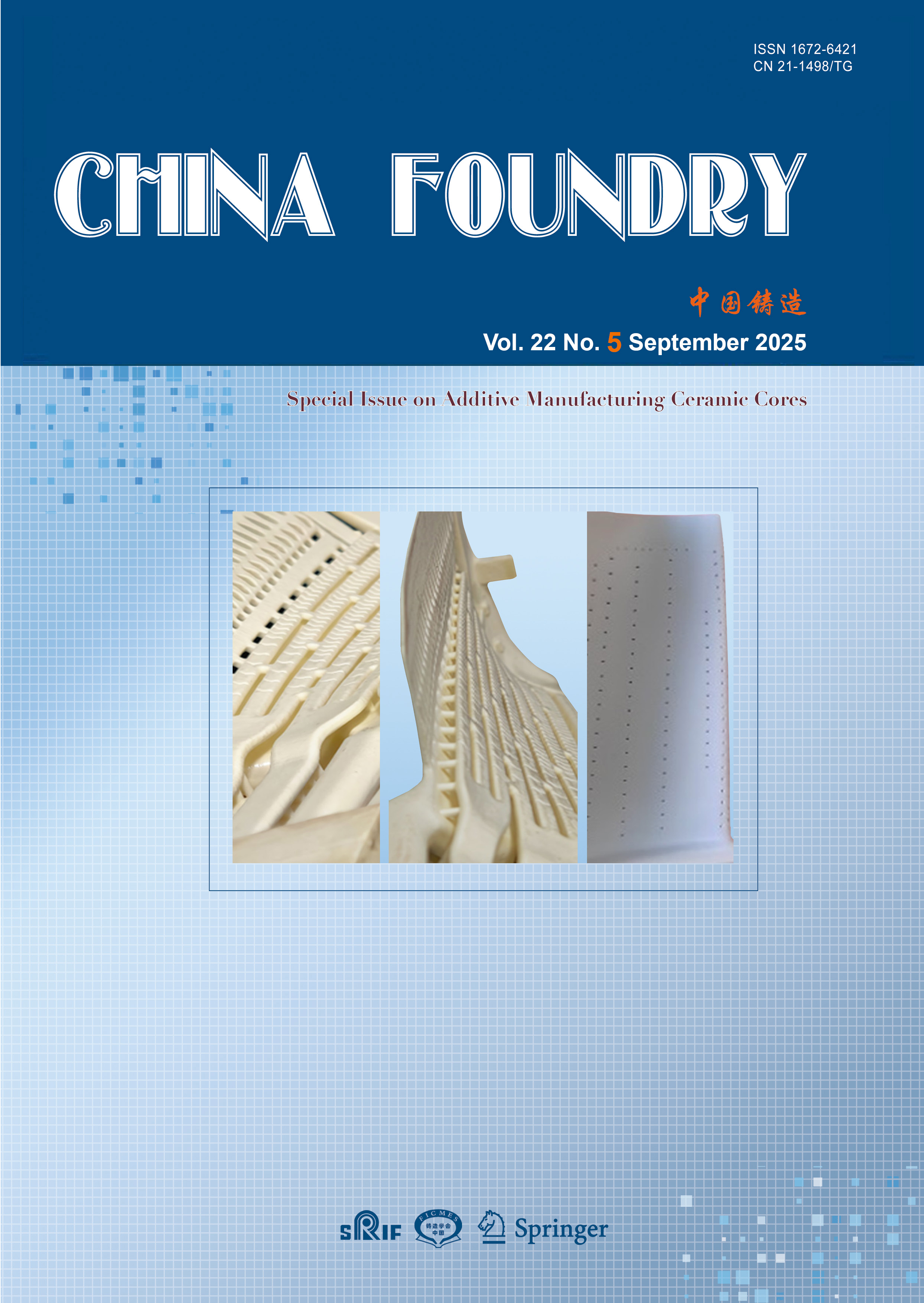 ISSN: 1672-6421主办单位沈阳铸造研究所 中国机械工程学会铸造分会 出版单位 铸造杂志社和斯普林格 主编 娄延春 邮箱: louych@chinasrif.com副主编 张春艳 邮箱: zcy@foundryworld.com数据库收录 SCI Expanded (SciSearch) JCR/Science Edition SpringerLink Scopus of Elsevier EBSCO, CSCD, CA, AJ, 知网, etc.版权声明 © China Foundry遵循CC-BY-NC(知识共享-署名-非商业性使用)协议,铸造杂志社是出版物的版权所有者